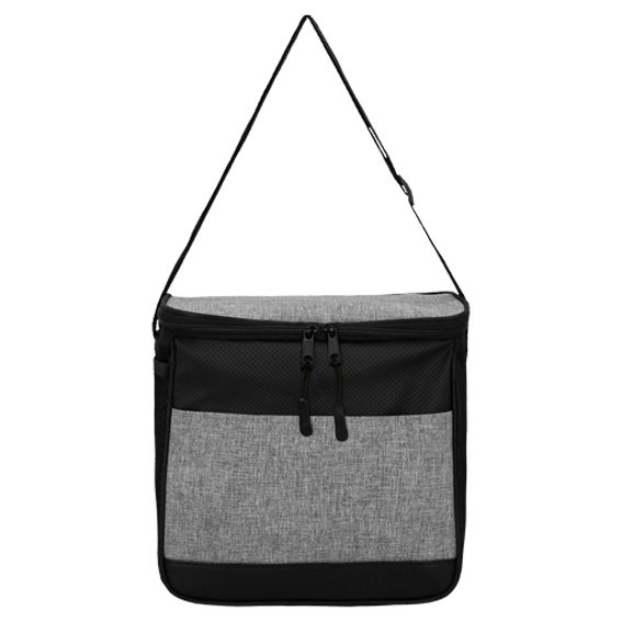 Lonchera con interior impermeable, correa ajustable, dos bolsas de malla laterales, compartimento externo al frente de curpiel, medidas: 24.0 x 24.0 cm, material: Poliéster / Curpiel, capacidad: 9 lts, métodos de grabado: Bordado,Serigrafía