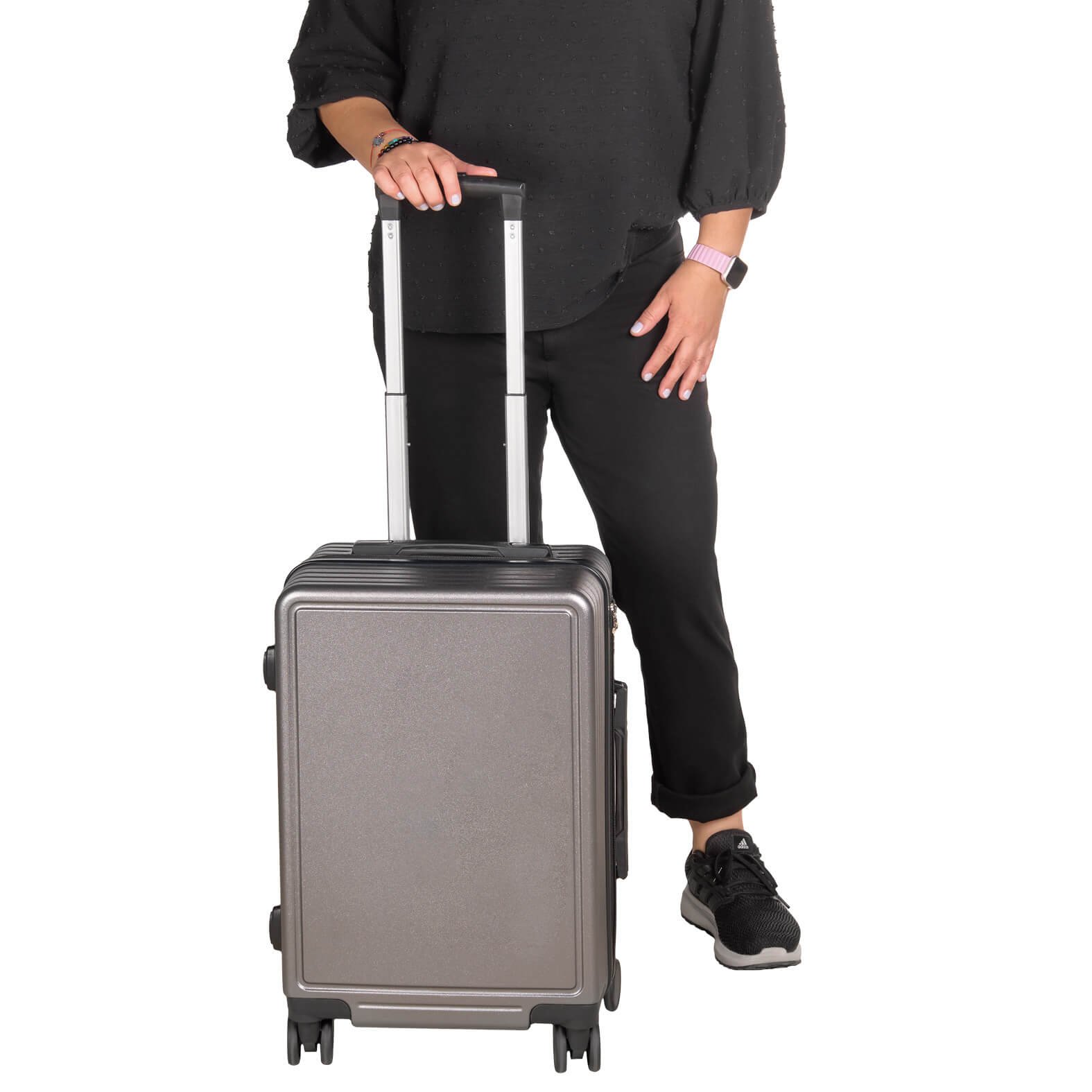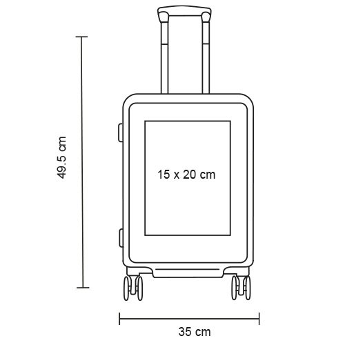 Maleta de plástico para viaje. Cuenta con doble rueda giratoria, asa metálica retráctil y candado de seguridad., medidas: 35.0 x 49.5 cm, material: Plástico, capacidad: , métodos de grabado: Serigrafía