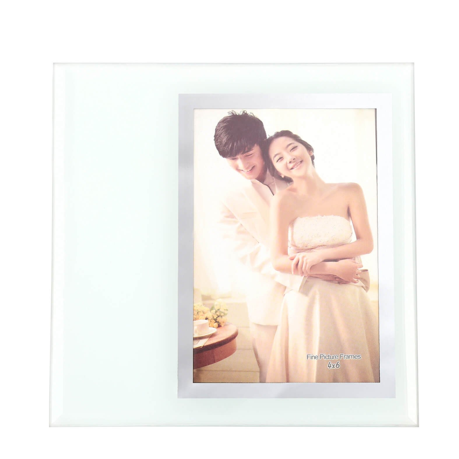 Portarretratos de cristal con soporte plegable. Medidas de espacio para fotografía: 9.7 x 14.4 cm., medidas: 19.0 x 19.0 cm, material: Cristal, capacidad: , métodos de grabado: Serigrafía