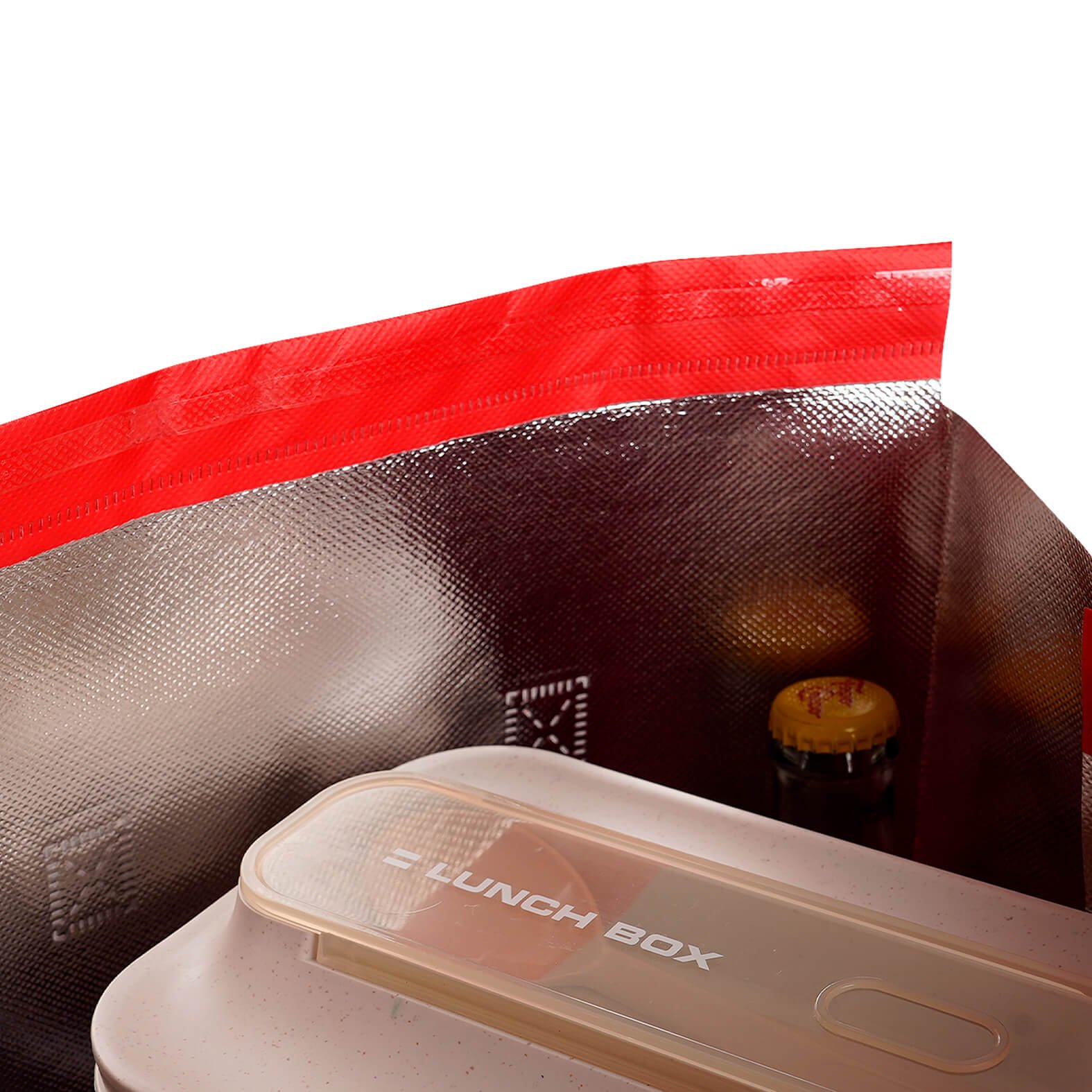 Bolsa de non woven con interior metalizado, laminado y termosellado con asas. Cuenta con una pestaña en la parte superior con pegamento reutilizable para cerrar la bolsa., medidas: 29.5 x 30.5 cm, material: Non woven, capacidad: , métodos de grabado: Serigrafía
