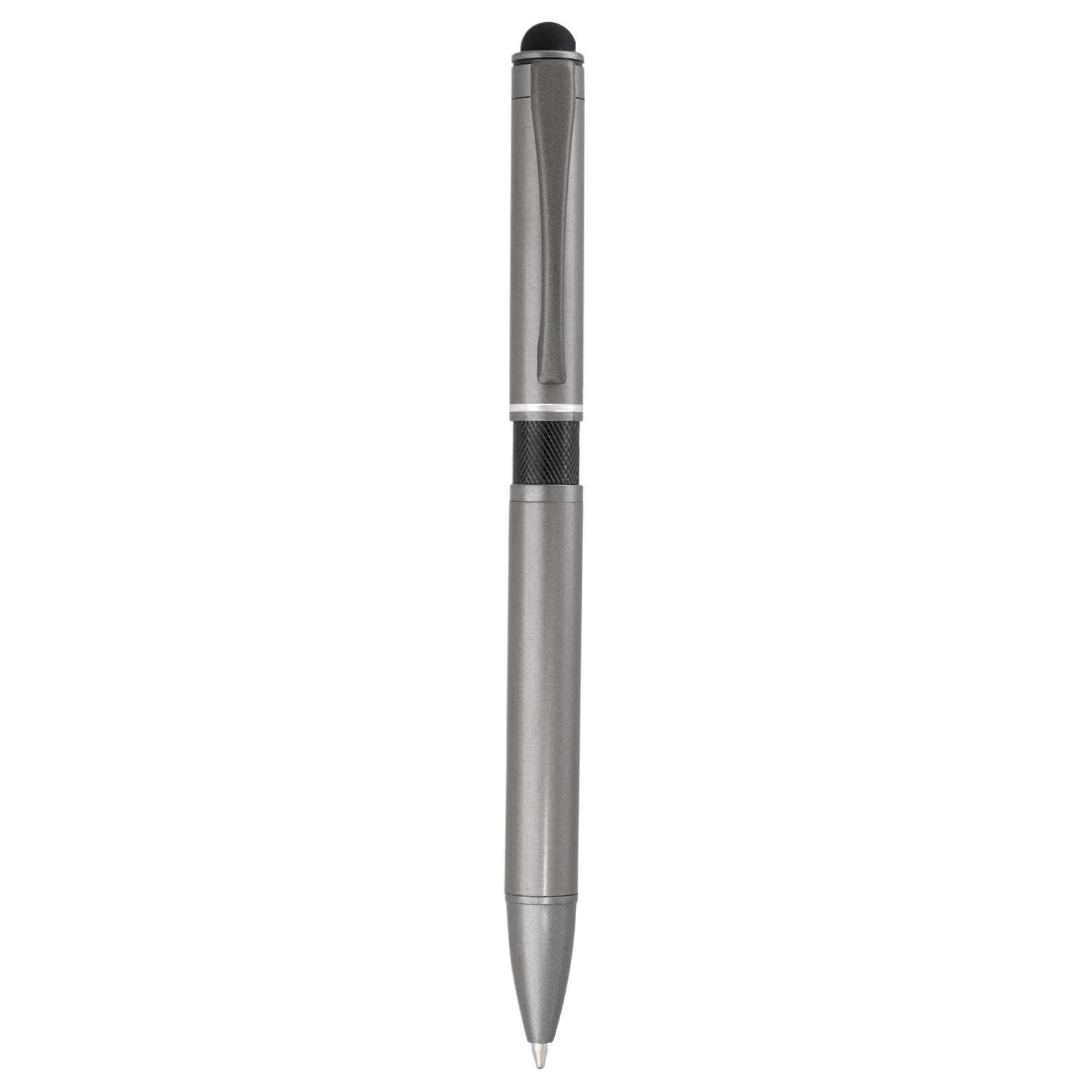 Bolígrafo metálico con detalle en el centro, clip, goma touch screen y mecanismo de click., medidas: 14.5 x 1.0 cm, material: Metal, capacidad: , métodos de grabado: Grabado Láser,Serigrafía,Tampografía